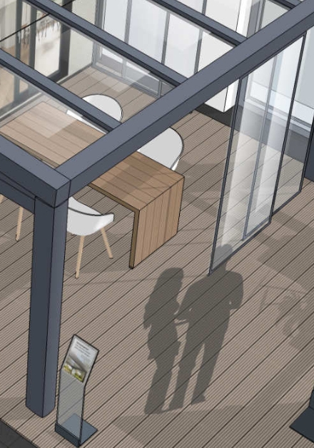 Unter dem Namen SunChill werden von TS-Aluminium vorkonfektionierte Terrassendächer angeboten. Die festen Größen erlauben eine direkte Bestellung im Webshop inklusive Statikberechnung.