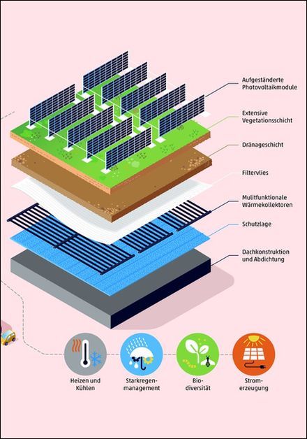 Systeme wie das Aktivdach der Kraftwerk Energiezukunft GmbH verbinden Energieerzeugung, Begrünung und Wasserbewirtschaftung auf Flachdächern – ein Ansatz mit wachsender Bedeutung für kommunale Gebäude.